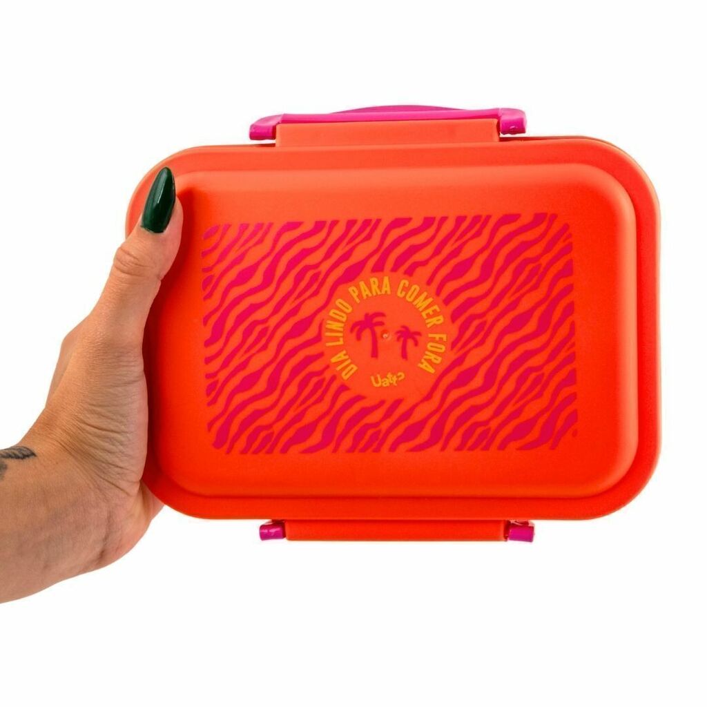 Material: Plástico Polipropileno (PP). Contém: 1 pote com capacidade de 1,3l, 1 pote removível com divisória e capacidade de 480ml, 1 tampa com duas travas laterais. Volume: Marmita: 1,3l. Pote interno: 500ml. Dimensões: 19 x 7,5 x 15cm. Cuidados: Lavar à mão com água, sabão neutro e com o lado macio da esponja para evitar arranhões na superfície. Não utilizar produtos abrasivos. Pode ir ao congelador. Pode ir ao micro-ondas. Não pode ir à lava-louças. Não é hermeticamente fechado, por isso para transportá-lo, é necessário que seja totalmente em posição horizontal. Sempre preocupados com a qualidade e a segurança, trazemos até você um produto livre de BPA (Bisfenol A). O BPA é um componente químico presente em alguns tipos de plásticos e pode causar uma série de problemas para nossa saúde quando absorvido pelo corpo. Aproveite seu produto sem preocupações! Curtiu nosso produto e comprou? Compartilhe nas redes sociais com a #uatt *Produto sujeito à alteração.
